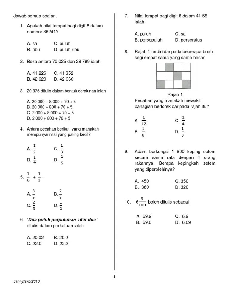 Format dokumen ini adalah dalam 'pdf, words, etc'. Latihan asas matematik tahun 4 sjkt. Right click > save target as > save. Contoh karangan bahasa tamil logaraja. Upsr bk3 matematik kertas 1 · peperiksaan akhir tahun bahasa inggeris kertas 1 tahun 4 .